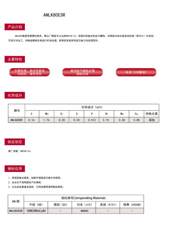 预硬塑料模具ANLK80ESR钢