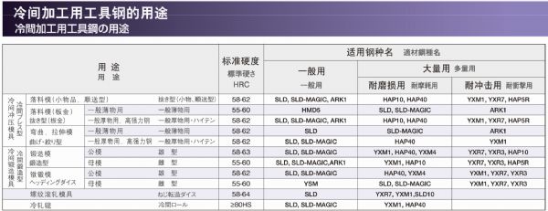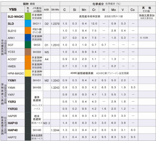 【冷间工具钢/冷作工具钢】-YSS冷间加工用工具钢